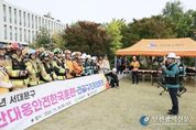 [인천광역신문] 관리자 기자 | 서대문구는 최근 이화여자대학교 산학협력관 일대에서 진행한 ‘2025 재난대응 안전한국훈련’을 성공리에 마무리했다고 3일 밝혔다. 이번 훈련은 ▲지진에 따른 건축물 붕괴와 화재 ▲전기·가스시설 파손 ▲도로 싱크홀 및 인근 산불 확산 등 복합 재난 상황을 가정해 이루어졌다. 단일 재난이 다른 재난으로 연쇄 확산하는 ‘복합 재난’의 특성을 반영해 현장 지휘·통제·복구 기능이 동시에 가동되는 통합형 훈련으로 추진했다. 서대문구청, 서대문소방서, 서대문경찰서, 이화여자대학교 등에서 300여 명이 참여한 가운데 각 기관은 재난 발생 시 상황판단 회의를 통한 신속한 의사결정과 유관기관 협조 체계를 점검했다. 이를 위해 통합지원본부 토론훈련과 실전형 현장훈련을 연계했다. 특히 이번 훈련에서는 소방 헬기와 로봇견(로봇개)을 활용한 입체적 화재 진압과 인명 수색 장면이 시연돼 실전 같은 긴장감을 더했다. 또한 서대문구청 ▲도로과의 ‘GPR(지반탐사 레이더) 차량을 통한 이화여대 일대 지반 공동 탐사’ ▲푸른도시과의 ‘안산(鞍山) 자락 잔불 진화’ ▲재난안전과의 ‘드론을 이