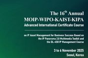 [인천광역신문] 관리자 기자 | 지식재산처는 세계지식재산기구(WIPO) 및 한국발명진흥회(KIPA)와 공동으로 11월 3일~ 6일까지 한국지식재산센터(서울 강남구)에서 '국제 지식재산 전문가 인증과정(AICC)'을 개최한다. 올해는 지식재산처·WIPO·KIPA가 공동 개발한 지식재산(IP) 비즈니스 교육 e러닝 콘텐츠인 IP 파노라마 2.0을 활용해 온라인 과정을 수료한 119개국 1,364명 중 23개국 35명의 우수 학습자를 최종 선발해 서울에서 오프라인으로 심화 교육을 진행한다. 이번 교육을 통하여 세계 각국의 지식재산 전문가들이 지식재산 경영 및 활용 전략을 수립하는데 도움을 받을 수 있을 것으로 기대된다. 이번 오프라인 교육 과정은 국제 비즈니스 경영 측면에서 지식재산의 효과적인 활용과 관련된 ▲ 지식재산(IP) 가치 평가 및 금융 ▲ 인공지능(AI) 등 최신 IP 동향 ▲ 특허등급 평가 및 활용 사례 ▲ IP 면허 전략 ▲ IP 면허 협상을 위한 실습 등으로 구성됐다. 특히, 창업초기기업ㆍ개척기업을 위한 IP 경영전략 수립 방법, 분쟁 대응전략 등의 내용도 포함되어 있어 경영 실무역량 배양에 도움이 될 것으로