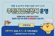 [인천광역신문] 관리자 기자 | 고성군은 2026년 집중안전점검 기간(4월 20일~6월 19일) 동안 군민이 직접 참여하는'2026년 집중안전점검 주민점검신청제'를 운영한다고 밝혔다. '주민점검신청제'는 집중안전점검 과정에 군민이 직접 생활 속 위험요소를 조기에 발굴하여 점검신청을 할 수 있도록 마련됐으며, 안전점검이 필요한 시설물 등에 대하여 군민의 의격을 적극 수렴하여 사각지대 해소를 위한 제도이다. 특히 올해는 전년도보다 한층 더 활성화하여 안전취약계층 및 민생중심시설 등을 중점으로 추진하여 예방 중심의 안전관리체계를 강화하는 데 가장 큰 목적을 두고 있으며, 군민들의 적극적인 참여를 통해 생활 속 안전 사각지대를 해소하고 행정과 군민이 함께 만들어가는 예방 중심의 안전관리체계를 강화할 방침이다. 점검대상은 △공장시설 △공동주택 △숙박시설 △다중이용시설 △체육시설 등 행정안전부에서 지정한 20종 시설유형과 안전취약계층 및 민생중심시설 등으로 사회적 관심에 발맞추고 실생활과 밀접한 다양한 시설이 해당된다. 군민들은 읍면사무소를 방문하거나 안전신문고 앱, 포털을 통해 점검 시설물을 신청할 수 있으