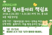 [인천광역신문] 관리자 기자 | 인천광역시교육청신트리도서관은 성인을 대상으로 글쓰기 기초부터 퇴고까지 체계적인 글쓰기 과정을 함께하는 독서동아리 ‘책쉼표’ 참여자를 모집한다. 이번 프로그램은 책과 글을 매개로 자신을 돌아보는 시간을 갖게 하는 독서동아리로, 에세이 중심의 읽기와 집필 활동을 통해 참여자의 사유와 표현의 폭을 넓히고자 마련했다. 강의는 ‘나라는 사람’, ‘일상의 발견’, ‘기억의 습작’ 등의 주제로 구성되며, 글쓰기의 기초를 다진 뒤 제시된 글감을 바탕으로 초고 작성부터 퇴고 과정까지 직접 실습하며 완성도 있는 글쓰기 역량을 쌓을 수 있도록 운영한다. 프로그램은 2월 24일부터 3월 31일까지 6회에 걸쳐 운영되며, 모집은 1월 30일부터 2월 18일까지 신트리도서관 누리집에서 선착순으로 진행된다. 프로그램 신청 및 운영에 대한 자세한 사항은 신트리도서관 누리집을 확인하거나 독서문화과로 문의하면 된다. [뉴스출처 : 인천광역시교육청]
