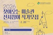 [인천광역신문] 관리자 기자 | 인천광역시교육청은 지역과 연계한 학교예술교육의 일환으로‘찾아오는 미술관’전시 참여 작가를 모집한다. ‘찾아오는 미술관’은 학교 유휴공간을 활용해 미술 작품을 전시함으로써 학생들이 일상 속에서 예술을 자연스럽게 경험하도록 돕는 학교예술교육 사업이다. 이번 모집은 인천 지역 전문 미술작가를 대상으로 하며, 접수 기간은 2월 9일부터 2월 20일 오후 4시까지이다. 자세한 사항은 인천시교육청 누리집이나 블로그에서 확인할 수 있다. 시교육청 관계자는“찾아오는 미술관은 2023년 시작 후 매년 높은 만족도를 보여 온 사업으로, 일상에서 예술을 접하는 경험은 학생들의 감수성과 사고의 폭을 넓히는 큰 힘이 될 것”이라며 “올해도 많은 지역 작가분들이 함께해 주시길 기대한다”고 말했다. [뉴스출처 : 인천광역시교육청]
