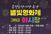 [인천광역신문] 관리자 기자 | 홍천군은 10월 15일부터 18일까지 매일 저녁 6시, 홍천중앙시장 옥상 정원에서 가을밤의 낭만이 가득한 ‘별빛영화제 그리고 야시장’을 개최한다고 밝혔다. 이번 행사는 홍천전통시장 활성화를 위해 마련된 문화형 야시장 프로그램으로, 별빛 아래에서 영화와 먹거리를 동시에 즐길 수 있는 특별한 야외 페스티벌이다. ‘별빛영화제 그리고 야시장’에서는 ▲15일 서울의 봄, ▲16일 베테랑 2, ▲17일 소방관, ▲18일 히트맨 2가 상영된다. 매일 저녁 6시부터 6시 40분까지는 프리 공연으로 가수 이진, 홍지나, 그리고 하모니카 동호회 한옥타브, 하모홀릭이 무대에 올라 감미로운 음악으로 영화제의 분위기를 한껏 끌어올린다. 공연이 끝난 뒤에는 6시 40분부터 본격적인 영화 상영이 시작되어, 가을 저녁의 감성과 함께 다채로운 즐거움을 선사한다. 영화 관람과 함께 즐길 수 있는 야시장 먹거리도 풍성하게 준비됐다. 홍천중앙시장 상인회가 직접 운영하는 부스에서는 어묵, 떡볶이, 닭강정, 튀김 등 시장표 간식은 물론, 시원한 음료와 간단한 주류까지 마련되어 관람객들의 오감을 만족시킬 예