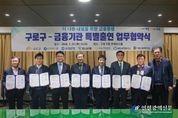 [인천광역신문] 관리자 기자 | 구로구가 1월 29일 구청 3층 르네상스홀에서 신한은행, 우리은행, 하나은행, 국민은행, 새마을금고, 서울신용보증재단과 ‘더 나은 내일을 위한 금융동행’ 특별출연 협약을 체결하고, 총 212억 5천만 원 규모의 중소기업·소상공인 특례보증을 추진한다. 이번 협약은 자금 조달에 어려움을 겪는 지역 내 기업들의 금융 접근성을 높이기 위한 것으로, 구로구와 5개 금융기관이 공동으로 출연한 재원을 바탕으로 서울신용보증재단이 보증을 지원하는 방식이다. 협약에 따라 총 22억 원의 출연금이 조성됐다. 출연 비율은 구로구 2억 원, 신한은행 8억 원, 우리은행 4억 원, 하나은행·국민은행 각 3억 원, 새마을금고 2억 원이다. 서울신용보증재단은 이를 기반으로 보증한도 212억 5천만 원의 특례보증을 시행한다. 특히 신한은행 출연금 가운데 5억 원은 담보력이 부족한 중소기업과 소상공인을 위한 특별보증 재원으로 별도 활용될 예정이다. 융자 한도는 중소기업 최대 1억 원, 소상공인 최대 5천만 원이며, 구로구에 사업장을 두고 사업자등록이 되어있는 경우 신청할 수 있다. 대출 조건은 1년
