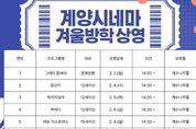 [인천광역신문] 관리자 기자 | 인천광역시교육청계양도서관은 시민에게 다채로운 영상문화 경험을 제공하기 위해 ‘겨울방학 계양시네마’와 ‘테마 영화 큐레이션 코너’를 운영한다고 29일 밝혔다. 먼저,‘겨울방학 계양시네마’는 휴관일을 제외한 2월 한 달간 운영하며, 계수나무홀에서 온 가족이 즐길 수 있는 다양한 장르의 영화 14편을 상영할 예정이다. 이와 함께 디지털자료실에서는 사서가 선정한 ‘테마 영화 DVD 큐레이션 코너’가 상시 운영된다. 2월의 테마는 ‘고전과 문학’으로, 인문학적 감수성과 깊이 있는 사유를 끌어낼 수 있는 작품을 선별․전시하여 책과 영화가 어우러진 특별한 문화 경험을 제공할 계획이다. 계양도서관 관계자는 “추운 겨울, 도서관에서 영화를 통해 정서적 휴식을 취하고 인문학적 소양을 쌓는 즐거운 시간이 되길 바란다”고 전했다. 자세한 사항은 계양도서관 누리집을 확인하거나 디지털자료실로 문의하면 된다. [뉴스출처 : 인천광역시교육청]