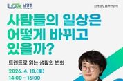 [인천광역신문] 최예준 기자 | 남양주시는 오는 18일 오후 2시 정약용도서관 3층 세미나실에서 시민 150명을 대상으로 ‘사람들의 일상은 어떻게 바뀌고 있을까’를 주제로 인문학 강연을 개최한다. 이번 강연은 빠르게 변화하는 사회 속에서 시민이 생활 트렌드를 이해하고, 다양한 변화 양상을 인문학적으로 해석할 수 있도록 마련했다. 강연에는 박현영 생활변화관측소 소장이 강연자로 나선다. 박 소장은 트렌드 분석 분야에서 다양한 연구와 저술 활동을 이어온 전문가다. 강연은 사전 신청을 통해 시민 150명을 모집해 운영한다. 박 소장은 강연에서 트렌드 변화 흐름을 중심으로 현대인의 생활 방식 변화를 다양한 사례로 설명할 예정이다. 소비 패턴과 여가 활동, 가치관 변화 등 일상 전반의 흐름을 짚어 시민의 이해를 돕는다. 시는 이번 강연을 시작으로 시민 참여형 인문학 프로그램을 확대하고, 도서관 중심 문화 프로그램을 강화해 시민 삶의 질 향상에 힘쓸 계획이다. 시 관계자는 “이번 강연이 변화하는 시대 속에서 시민이 자신의 일상을 새로운 시각으로 바라보는 계기가 되길 기대한다”며 “앞으로