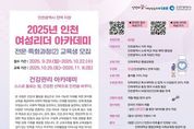 [인천광역신문] 최예준 기자 | 인천광역시는 역량 있는 여성 인재를 발굴하고 육성하기 위해 인하대학교 평생교육원과 함께 ‘2025 인천 여성리더 아카데미’ 두 번째 전문・특화과정인 ‘건강관리 아카데미’ 교육생을 모집한다고 밝혔다. 이번 과정은 건강과 웰빙을 중심으로 지속 가능한 미래를 준비할 여성리더 양성에 중점을 두고 있으며, 전문가 특강, 건강관리 강의, 현장 견학 등 다양한 학습과 실습을 통해 교육생들이 직접 체험하며 역량을 키울 수 있도록 구성됐다. 특히 ‘인천시와 함께하는 생생 시정 현장견학’ 프로그램을 통해 교육생들이 인천시 정책과 시정 현장을 직접 경험할 수 있는 기회도 제공한다. 모집 대상은 ▲인천시에 거주하는 여성 ▲인천시 관내 직장 여성 ▲인천 소재 학교의 재학생 및 졸업생으로, 총 60명을 선발한다. 접수는 오는 10월 22일까지 진행되며, 교육은 10월 25일부터 11월 8일까지 수요일과 토요일 인하대학교 평생교육원에서 열린다. 앞서, 지난 5월과 9월에는 ‘2025 인천 여성리더 아카데미’ 기본과정과 문화·예술 분야 전문특화과정(Ⅰ)을 통해 각각 60명과 80명