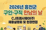 [인천광역신문] 최예준 기자 | 홍천군은 지역 주민의 취업 기회를 확대하고 기업의 인력난을 해소하기 위해 오는 4월 17일과 24일 두 차례에 걸쳐 ‘2026년 구인·구직 만남의 날’ 행사를 개최한다. 이번 행사는 구인 기업과 구직자가 직접 만나 채용 설명과 면접을 진행하는 맞춤형 채용 행사로, 홍천읍 행정복지센터 3층 대회의실에서 열린다. 먼저 4월 17일 오후 1시부터 3시까지는 CJ프레시웨이㈜가 참여해 육군종합군수학교 1 수송연대 내 단체 급식 조리원 20명을 모집한다. 선발된 인력은 식재료 전처리, 조리, 세척, 배식 등의 업무를 담당하게 된다. 이어 4월 24일 오후 2시부터 4시까지는 관내 우수 제조기업인 태양 3C㈜의 채용 설명회가 열린다. 제조 설비 증설에 따라 생산 분야에서 근무할 신규 인력 50명을 모집하며, 현장에서는 기업 소개와 함께 1대1 심층 면접도 진행할 예정이다. 이번 행사는 사전 등록 또는 현장 방문을 통해 참여할 수 있다. 구직자는 기업의 상세 근로조건을 듣고 바로 면접에 참여할 수 있으며, 참여를 희망하는 사람은 이력서를 지참해 행사 시간 안에 방문하면 된다. &n