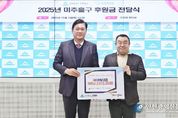 [인천광역신문] 최예준 기자 | 인천 미추홀구는 지난 2일 구청장실에서 ㈜코끼리공장(대표 이채진)으로부터 취약계층인 어르신 일자리 지원을 위한 후원금 약 261만 원을 전달받았다. 이번 후원금은 올해 ‘미추홀구 환경·사회·지배구조(ESG) 센터’에서 생산한 새 활용 제품 판매로 발생한 수익금의 일부로 마련됐으며, 기부자의 뜻에 따라 학산나눔재단을 통해 관내 취약계층 어르신 일자리 사업에 지원될 예정이다. 이채진 대표는 “이에스지(ESG) 센터와 함께 새 활용 제품을 생산하는 일에 참여하게 돼 매우 뜻깊었다.”라며, “제품 판매로 얻은 수익금 일부를 지역사회에 다시 기부할 수 있어 더욱 의미가 크다.”라고 전했다. 이영훈 구청장은 “초고령사회에 진입한 미추홀구의 인구 특성상 취약계층인 어르신 일자리 확산은 매우 중요한 과제”라며, “뜻깊은 후원을 해주신 이채진 대표님께 감사드리며, 소중한 후원금이 어르신들의 활발한 사회 참여와 고독사 등 지역 문제 해결로 이어질 수 있도록 노력하겠다.”라고 말했다. [뉴스출처 : 인천시 미추홀구]
