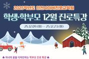 [인천광역신문] 최예준 기자 | 인천광역시교육청은 9일부터 23일까지 인천사이버진로교육원 온라인 화상 시스템을 활용해 ‘학생·학부모 맞춤형 12월 진로특강’을 운영한다. 특강은 ▲학생 대상 ‘꿈을 디자인하는 진로특강’ ▲학부모 대상 ‘자녀의 꿈을 디자인하는 진로특강’으로 운영한다. 학생 대상 특강은 겨울방학을 성장 기회로 삼을 수 있도록 초등학생 ‘겨울방학 생활 계획’과 ‘AI와 친구하기’, 중학생 ‘국어 공부 및 독서 전략’과 ‘학습·진로 체력 기르기’, 예비 고3 ‘2027 대입 전형 분석’ 등 학년별 주제를 다룬다. 학부모 대상 특강은 자녀 진로 지도를 위한 실질적 정보를 제공하기 위해 초·중등 학부모에게는 가정 독서 환경 조성 및 학년별 지원 전략을, 고등 학부모에게는 입시 변화 흐름을 안내한다. 특강은 인천 관내 초·중·고 학생과 학부모 누구나 12월 3일부터 인천사이버진로교육원 누리집에서 신청할 수 있으며, 모든 강의는 실시간 온라인 방식으로 진행된다. 자세한 사항은 진로진학직업교육과 진로교육팀 으로 문의하면 된다. [뉴스출처 : 인천광역시교육청]