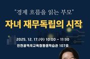[인천광역신문] 최예준 기자 | 인천광역시교육청평생학습관은 17일 고3 학부모를 대상으로 부모쉼표 특강 ‘경제 흐름을 읽는 부모: 자녀 재무독립의 시작’을 운영한다. 이번 특강은 자녀의 사회진입을 앞둔 학부모가 변화하는 경제 환경을 이해하고, 준비된 시각에서 자녀의 재무독립을 지원하도록 돕는 프로그램이다. 강의는 전 증권사 애널리스트이자 경제·투자 리서치사 ‘광수네 복덕방’의 이광수 대표가 맡아 부모 역할, 경제 변화의 기본 이해, 가정에서 실천 가능한 경제 소통 방법 등을 안내한다. 참여 대상은 인천 관내 고3 및 관심 있는 학부모 100명이며, 신청은 12월 3일 오전 10시부터 평생학습관 누리집에서 선착순으로 받는다. 자세한 사항은 평생학습관 누리집 공지사항 또는 평생교육부로 문의하면 된다. [뉴스출처 : 인천광역시교육청]