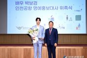 [인천광역신문] 최예준 기자 | 국민배우 박보검이 대한민국의 관문 인천공항을 알리는 명예홍보대사로 활동한다. 인천국제공항공사는 대한민국을 대표하는 배우 박보검을 인천공항 명예홍보대사로 신규 위촉했다고 16일 밝혔다. 이와 관련해 지난 15일 공사 대강당에서 명예홍보대사 신규 위촉행사가 열렸으며, 인천국제공항공사 이학재 사장이 박보검 배우에게 명예홍보대사 위촉패를 전달하고 공사 임직원들과의 기념촬영 등도 진행됐다. 박보검 배우는 향후 3년간 인천공항 명예홍보대사로서 인천공항을 전 세계 곳곳에 알리기 위한 다양한 활동에 참여할 예정이다. 공사는 이번 박보검 홍보대사 신규 위촉을 통해 인천공항의 다양한 스마트 서비스 및 편의시설과 공사가 추진 중인 주요 혁신사업 홍보를 확대해 국민과의 소통을 한층 더 강화해 나간다는 계획이다. 공사는 지난해 수립한 ‘비전 2040’을 바탕으로 디지털 대전환, 항공 AI 혁신허브 개발, 공항경제권 개발, K-공항 수출 등 ‘공항을 넘어, 세상을 바꾸는 공항’으로 도약하기 위한 다양한 미래 성장사업을 추진 중이다. 이번에 인천공항 명예홍보대사로 위촉