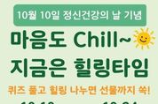 [인천광역신문] 최예준 기자 | 부평구 부평정신건강복지센터는 세계 정신건강의 날(10월 10일)을 맞아 10일부터 24일까지 ‘온라인 힐링 캠페인’을 진행한다. 이번 캠페인은 누구나 정신건강의 중요성을 쉽고 재미있게 되새길 수 있도록 기획됐다. 참여자는 포스터 내 큐알(QR)코드를 통해 ▲세계 정신건강의 날 관련 퀴즈 풀기 ▲스트레스 해소 방법 공유 ▲‘나만의 소울OO(장소·노래·음식 등)’ 작성하기 등 설문에 응답할 수 있다. 센터는 오는 31일 설문에 참여한 선착순 200명에게 편의점 상품권(기프티콘)을 증정할 계획이다. 허휴정 센터장은 “이번 캠페인은 구민들이 일상 속에서 정신건강의 의미를 되새기고, 스스로를 돌보는 방법을 공유하는 기회가 될 것”이라며 “앞으로도 구민들의 정신건강 증진을 위해 다양한 사업을 이어가겠다”고 말했다. [뉴스출처 : 인천시부평구]