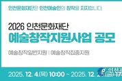 [인천광역신문] 최예준 기자 | 인천문화재단은 오는 12월 2026 예술창작지원사업 공모를 시작한다. 공모 분야는 예술창작일반지원, 예술창작집중지원으로 두 가지이다. 접수기간은 2025년 12월 4일부터 12월 26일까지이며, 국가문화예술지원시스템으로 온라인 신청을 받는다. 2026 예술창작지원사업 공모 계획은 분야별, 지역별 예술인 간담회에서 수렴한 현장 의견을 반영하여 마련됐다. 이번 공모의 주요 변경사항 중 하나는 지원자 책임 신청제 확대 시행이다. 2025년부터 추진하고 있는 행정 간소화 기조에 따라 2026년 공모사업은 신청 자격 증빙자료를 최종 선정 이후 제출하는 것으로 변경했다. 이에 예술인의 공모 신청 서류 준비에 대한 부담이 경감될 것으로 예상된다. 2026 예술창작지원사업 공모에 대한 자세한 사항은 인천문화재단 홈페이지 공지사항과 11월 26일 예정된 사업설명회(온라인: 오전 10시 30분, 오프라인: 15시)에서 확인할 수 있다. [뉴스출처 : 인천시]