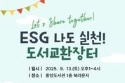 [인천광역신문] 최예준 기자 | 인천광역시교육청중앙도서관은 환경친화적 독서 문화 조성과 지역사회 나눔 실천을 위해 9월 13일 오후 1시부터 4시까지 중앙도서관 1층 북라운지에서 ‘ESG 실천 도서교환장터’를 개최한다. 시민들은 다 읽은 책을 가져와 다른 책과 교환할 수 있으며, 최근 5년 이내 발간된 개인 소장 도서만 1:1로 교환할 수 있다. 1인당 최대 3권까지 가능하다. 단, 파손 도서, 수험서, 교과서, 전문서적, 전집류 등은 교환 대상에서 제외된다. 같은 날 중앙도서관에서는 주말을 맞아 다양한 부대 프로그램도 마련된다. ‘도서관에서 만나는 우리 동네 국립극장’ 공연 콘텐츠와 ‘내 손에 쏙! 세계의 랜드마크’ 다문화 체험활동이 함께 진행돼, 가족 단위 방문객에게 풍성한 즐길 거리도 제공한다. [뉴스출처 : 인천광역시교육청]