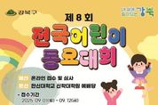 [인천광역신문] 최훈 기자 | 서울 강북구는 오는 11월 7일 한신대학교 신학대학원 예배당에서 열리는 ‘제8회 전국 어린이 동요대회’ 참가자를 모집한다. 올해 8회를 맞이하는 이번 대회는 어린이들의 창의력과 감수성을 키우고 음악적 소양을 함양하기 위해 마련됐다. 강북구와 사단법인 한국반달문화원이 공동 주최하고, 교육부와 서울특별시, 서울특별시교육청이 후원한다. 참가 자격은 전국 초등학생 및 서울특별시 내 4세 이상 미취학 아동으로, 독창과 중창 두 개 부문으로 나뉜다. 독창은 유치부·초등 저학년부·초등 고학년부로 구분되며, 중창은 10인 이내 팀으로 참가할 수 있다. 참가곡은 동요 자유곡 1곡이다. 참가 신청은 9월 1일부터 12일 오후 6시까지 강북구청 홈페이지 또는 이메일, 우편으로 가능하다. 신청 서식과 악보, 참가영상 파일 등을 제출하면 된다. 예선(MR, 피아노반주, 무반주, 자유롭게 선택 가능)은 동영상 심사로 9월 22일부터 24일까지 진행되며, 본선 진출자는 9월 29일 발표된다. 본선은 11월 7일 현장에서 자유곡 1절(피아노 반주)로 치러진다. 최종 심사에서 선정된 3