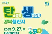 [인천광역신문] 최훈 기자 | 서울 강북구는 오는 9월 27일 오전 10시부터 오후 4시까지 북서울꿈의숲 일대에서 ‘탄생 강북 챌린지(탄소중립 생활실천 강북 챌린지)’와 ‘2025 나눔과 순환의 즐거운 장터’를 개최한다. 탄소중립과 자원순환 행사를 연계해 추진함으로써 주민들의 공감대를 형성하고 환경정책에 대한 실천 의지를 확산하는 계기가 될 것으로 기대된다. ‘탄생 강북 챌린지’의 ‘탄생’은 ‘탄소중립 생활실천’의 줄임말로 이번 행사는 탄소중립 실천 약속을 비롯해 플라스틱 주제관 등 5개 마당 35개 체험 프로그램으로 구성된다. 탄소중립 실천 약속은 참가자들이 ‘나만의 실천 약속’을 작성해 지구 조형물에 부착하고 탄소중립을 약속하는 방식으로 운영된다. 플라스틱 주제관에서는 플라스틱 과다 사용의 심각성을 알리고 소비 감축을 유도하는 전시·체험이 마련된다. 또한 놀이·체험·산업·홍보 마당에서는 재활용품을 활용한 키링 만들기, 태양광 RC카 레이싱, 자전거 발전 솜사탕 만들기, 전기·수소차 시승 및 저탄소 제품 전시, 환경 정책 홍보 등 35개의 다양한 프로그램이 운영된다. ‘2025 나눔과 순환의 즐거