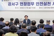[인천광역신문] 최훈 기자 | 서울 강서구는 19일 구청 대회의실에서 ‘현장업무 안전 실천 서약식’을 열고 안전사고 없는 사업장 조성을 위한 실천 의지를 다졌다. 구는 지난 18일 청소 용역업체 종사자 사망 사고가 발생함에 따라 안전한 사업현장을 조성하겠다는 결연한 의지를 다지기 위해 마련됐다. 서약식에는 청소, 공원녹지, 도로, 하수, 공공시설 등 구의 현장 업무를 처리하는 용역업체 대표자 및 관계자 90여 명이 참석했다. 이날 진 구청장을 비롯한 참석자들은 서약서에 서명하며 산업재해 예방을 위한 실천 의지를 함께 다졌다. 서약서에는 ▲강서구민과 종사자의 생명 및 안전 최우선 ▲안전보건관리체계 구축으로 안전한 사업장 조성 ▲현장 안전수칙 준수 ▲안전문화 확산을 위한 전직원 안전교육 지속 실시 등 안전보건 의무이행을 위한 실천 항목이 담겼다. 서약식에 이어 현장에서 발생할 수 있는 사례를 중심으로 산업재해 예방 교육도 진행됐다. 진 구청장은 “안타까운 사고가 발생해 구청장으로서 너무나 참담한 마음이다. 구에서는 지금의 상황을 매우 엄중하고 비상하게 인식하고 있다”며 “유사사