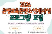 [인천광역신문] 최훈 기자 | 서울 은평구는 오는 30일까지 ‘2026년 은평교육콘텐츠 연계사업’ 프로그램을 모집한다고 밝혔다. 구는 이번 공모를 통해 학교 교육과정 및 방과후 활동과 연계가 가능한 다양한 교육 프로그램을 발굴하고 아동·청소년에게 폭넓은 배움의 기회를 제공할 예정이다. 은평교육콘텐츠연계사업은 지역사회의 우수한 교육자원을 학교와 연결해 다채로운 교육 경험을 제공하고 있다. 이번 공모를 통해 모집하는 분야는 총 6개 분야로 ▲문화예술체육 ▲진로체험활동 ▲인성심리정서 ▲창의과학융합 ▲마을탐방 ▲기후생태환경이다. 신청 자격은 아동·청소년을 대상으로 한 교육콘텐츠자원을 보유하고 프로그램 운영 역량을 갖춘 서울시 소재 단체 또는 개인이면 신청할 수 있으나, 영리 목적의 단체 또는 학원은 제외다. 공모에 접수된 프로그램은 심사 과정을 거쳐 최종 선정되며, 선정된 프로그램은 관내 67개 초·중·고·특수학교와 연계해 운영된다. [뉴스출처 : 서울특별시 은평구]