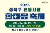 [인천광역신문] 최훈 기자 | 서울 성북구가 오는 9월 20일 성북구청 바람마당에서 ‘2025 성북구 전통시장 한마당 축제’를 개최한다. 이번 축제는 오후 12시부터 6시까지 진행되며, 오후 1시 개막식을 시작으로 다양한 프로그램이 마련된다. 성북구는 이번 축제를 통해 관내 전통시장의 우수성과 시장별 특색을 널리 알리고, 주민과 상인이 함께 어울릴 수 있는 소통의 장을 제공한다는 계획이다. 축제에는 길음시장, 돈암시장, 돌곶이시장, 장위전통시장, 정릉시장, 정릉아리랑시장 등 6개 시장이 참여해 각 시장의 대표 상품과 먹거리를 선보인다. 방문객들은 각종 상품을 직접 체험하고 구매할 수 있으며, 이를 통해 지역 경제 활성화에도 기여할 것으로 보인다. 문화예술 공연 역시 축제의 흥을 더할 예정이다. 국악신동 서건후, 전자바이올리니스트 제니유, 가수 정호·경수빈·김건표, 판토마임 퍼포먼스 그룹 동동악극단이 다채로운 무대를 선사한다. 또한 국민대 풍물패, 성신여대 댄스팀이 전통과 현대가 어우러진 특별 공연을 펼친다. 현장에서는 전통시장 O·X 퀴즈 등 주민 참여 이벤트도 열려 전통시장의 정겨운 분위기와 활기를 만끽할 수