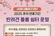 [인천광역신문] 최훈 기자 | 서대문구가 개천절과 주말, 추석 연휴가 이어지는 다음 달 3일부터 9일까지 7일 동안 ‘서대문 내품애(愛)센터’(모래내로 333)에 ‘반려견 돌봄 쉼터’를 운영한다. 센터는 성숙한 반려동물 문화 조성을 위해 지난해 4월 개소했으며 고향 방문이나 장거리 이동으로 반려견 보호가 어려운 구민을 위해 이번 서비스를 준비했다. 위탁 대상은 서대문구민이 양육하는 반려견으로 동물 등록 및 광견병 예방접종이 돼 있고 대인·대견 반응과 전염성 질환이 없어야 한다. 또한 임신·발정기에 있는 반려견은 이용이 제외된다. 돌봄 기간 반려견들은 센터 내 놀이장과 옥상 놀이터에서 보호받으며 자유롭게 활동한다. 안전을 최우선으로 오전 9시부터 밤 8시까지 3인 1조로 구성된 돌봄 인력이 2교대로 근무한다. 자원봉사자도 오전과 오후에 3명씩 함께 배치된다. 야간에는 당직 인력이 CCTV를 통해 반려견 상태를 지속해서 모니터링한다. 질병이나 부상 발생 등 만일의 상황에 신속 대응할 수 있도록 인근 동물병원과의 연계 체계도 마련했다. 아울러 전용 오픈채팅방을 통해 하루 1회 반