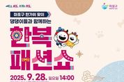 [인천광역신문] 최훈 기자 | 마포구는 민족 대명절 추석을 맞아 난지한강공원 내 마포반려동물캠핌장에서 열리는 ‘댕댕이 한복 패션쇼’에 참여할 반려견 가족 100팀을 선착순으로 모집한다. 마포반려동물캠핑장이 주최·주관하는 ‘댕댕이 한복 패션쇼’는 사랑스러운 반려견들이 한복을 곱게 차려입고 가족과 함께 즐기는 행사로, 9월 28일 오후 2시에 개최될 예정이다. 반려견은 패션쇼 현장에 마련된 한복을 입거나, 가족이 준비한 개성 있는 한복 의상을 입고 참여할 수 있다. 패션쇼에 참가한 반려견 중 심사를 거쳐 선정된 입상견 3팀과 인기견 5팀에게는 시상과 함께 펫캐리어, 펫베드 등 다양한 펫용품이 제공될 예정이다. 참가 대상은 동물등록이 된 반려견 가족 100팀이다. 참여 신청은 홍보 포스터의 QR코드 또는 캠핑장 전용폰(010-4470-2255)을 통해 할 수 있으며, 현장 접수도 가능하다. 아울러 현장에는 보호자 윷놀이 대회와 퓨전 국악 버스킹 등 즐길 거리가 풍성하게 준비돼 있으며, 서울시수의사회 소속 수의사가 참여하는 반려동물 건강상담 부스도 운영해 반려동물 건강관리와 동물등록제 홍보를