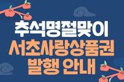 [인천광역신문] 최훈 기자 | 서울 서초구는 다가오는 추석을 맞아 주민들의 장바구니 부담을 덜고 지역경제를 활성화하기 위해 서초사랑상품권 할인율을 기존 5%에서 7%로 대폭 확대해 발행한다고 밝혔다. 이번 서초사랑상품권은 9월 16일 오전 10시, 서울페이플러스 앱을 통해 총 100억 원 규모로 발행된다. 1인당 최대 50만 원 한도에서 액면가보다 7% 저렴하게 구매할 수 있다. 특히 이번 추석부터는 네이버페이 머니를 통한 결제도 가능해져 편의성도 한층 높아졌다. 기존 보유 상품권이 있더라도 최대 보유한도인 150만 원을 넘지 않는 범위 내에서 추가 구매가 가능하다. 상품권의 유효기간은 구매일로부터 5년이며, 사용하지 않은 상품권은 언제든 전액 환불할 수 있다. 구매액의 60% 이상을 사용한 경우, 할인분을 제외한 잔액도 환불 가능하다. 구입한 상품권은 서초구 내 음식점, 소규모 마트, 편의점 등 3만여 개 가맹점에서 사용 가능하며, 자세한 사용처는 서울페이플러스 앱 ‘가맹점 찾기’ 메뉴에서 확인할 수 있다. 한편 서초구는 지난 8월, 소비촉진과 골목상권 활성화를 위해 ‘서초 땡겨요상품권’을 13억