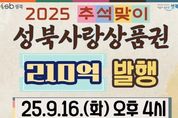 [인천광역신문] 최훈 기자 | 서울 성북구가 오는 2025년 9월 16일부터 210억 원 규모의 ‘성북사랑상품권’을 발행한다. 성북구는 올해 정부 2차 추경 6천억 원 중 8억 2천만 원의 국비를 확보해 기존 계획보다 200억 원을 추가 발행하게 됐다. 이에 따라 2025년 한 해 동안 총 910억 원 규모의 지역사랑상품권을 발행하게 됐으며, 이는 서울시 전체 자치구 가운데 가장 많은 규모다. 구는 이번 대규모 발행을 통해 상품권 이용 활성화와 지역경제 회복에 박차를 가한다는 계획이다. 특히 지역 내 소상공인과 주민들에게 실질적인 경제적 지원 효과가 있을 것으로 기대된다. 추석 명절을 맞아 발행되는 이번 성북사랑상품권은 기본 7% 할인에 더해 예산 소진 시까지 선착순으로 3% 페이백을 추가 제공해 총 10%의 할인 혜택을 누릴 수 있다. 다만 페이백 이벤트는 한정된 예산으로 운영되는 만큼 조기 소진 가능성이 있어 신속한 참여가 필요하다. 상품권은 서울페이+ 앱에서 구매와 사용이 가능하며, 성북구 내 서울페이 가맹점에서 사용할 수 있다. 이승로 성북구청장은 “910억 원 규모의 성북사랑상품권 발행이 지역경제 회복