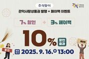 [인천광역신문] 최훈 기자 | 관악구가 다음 달 긴 추석 연휴를 앞두고 오는 16일 오후 1시부터 140억 원 규모의 관악사랑상품권을 발행한다. 이번 추석맞이 관악사랑상품권을 구매하면 최대 10% 할인 효과를 누리게 된다. 먼저 2024년 이후 5%를 유지해 온 기존 상품권 할인율이 국비 2%의 지원을 받아 7%로 상향 적용되어 발행될 예정이다. 이에 더해 구는 관악사랑상품권 사용 금액의 3%를 다음달 모바일 상품권으로 환급해 주는 ‘페이백 이벤트’를 진행한다. 페이백 이벤트는 예산이 소진되면 조기 종료된다. 관악사랑상품권은 서울페이플러스(서울Pay+) 앱을 통해 모바일 상품권 형태로 구매할 수 있다. 특히 이번 발행부터 간편 결제 서비스 중 이용률이 높은 ‘네이버페이(N pay)’ 머니로 상품권 구매가 가능해 청년층 등 구매율이 증가할 것으로 구는 기대한다. 상품권은 1인당 월 50만 원까지 구매할 수 있고, 보유 한도는 150만 원이다. 상품권을 사용하지 않은 경우에는 전액 구매 취소할 수 있고, 계좌이체로 구매하면 보유 금액의 60% 이상 사용 시 잔액을 환불받을 수 있다. 한편