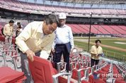 [인천광역신문] 관리자 기자 | 광주시가 프로야구 올스타 휴식기를 맞아 광주-기아챔피언스필드의 관람석 정비 작업에 속도를 낸다. 홈경기가 없는 오는 16일까지 휴식기 동안 공정률을 60%로 끌어올린다는 계획이다. 강기정 광주광역시장은 10일 관람석 교체 작업이 진행 중인 광주-기아챔피언스필드를 찾아 정비 현장을 점검하고 야외근로자들을 격려했다. 강 시장은 폭염에 고생하는 야외근로자들의 근무 환경을 살피며 휴식·폭염 예방 물품 비치 여부, 50분 작업 10분 휴식, 온열질환 징후 발현 시 즉각 작업 중지 등 작업장 안전수칙 준수 여부를 확인했다. 또 프로야구 기아타이거즈 팬들의 관심인 챔피언스필드 관람석 좌판, 등판, 컵홀더 등 교체 작업 현장을 직접 살폈다. 광주시는 사업비 6억여원을 투입해 변색과 파손 등 노후화된 관람석 1만6294석을 전면 교체하고 있다. 안정성과 편의성 향상을 위해 기존 관람석보다 좌판과 등판, 컵홀더 크기를 키우고, 디자인과 색상은 기존과 같지만 새 것으로 산뜻하게 교체한다. 광주시는 특히 프로야구 올스타 휴식기 동안 교체 작업에 속도를 내 공정률 60.8%(9