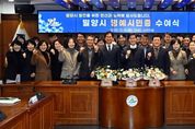 [인천광역신문] 관리자 기자 | 경남 밀양시는 15일 시청 소회의실에서 밀양시 발전에 기여한 전·현직 부시장 3명에게 명예시민증을 수여했다. 밀양시 명예시민증은 우방국가 또는 다른 지방자치단체의 주민으로서 밀양시정에 공로가 현저하거나 밀양시를 방문하는 귀빈에게 수여하는 증서로, 밀양시 부시장을 역임한 27대, 28대, 29대 부시장에게 수여됐다. 수여 대상자는 △27대 밀양시 부시장 김성규(현 경상남도 교육청년국장) △28대 밀양시 부시장 허동식(현 부산진해경제자유구역청 개발본부장) △29대 밀양시 부시장 곽근석(현 밀양시 부시장)이다. 수여 대상자들은 재임 기간 동안 시정의 주요 현안을 해결하며 밀양시의 다양한 정책을 이끌어 지역의 경제적, 사회적 발전에 기여해 왔다. 특히, 나노융합국가산업단지 조성 및 기업유치 기반 강화, 창녕~밀양 간 고속도로 개통, 김해~밀양 고속도로 건설 추진 등 지역경제 활력을 위한 기반 마련에 공통적으로 힘써왔다. 아울러 스마트 선도 농업을 통한 활기찬 밀양 조성, 머물고 싶고 다시 찾는 밀양을 만들기 위한 다양한 정책을 추진하며 품격 있는 문화·관광 도시