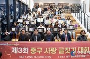 [인천광역신문] 박진 기자 | 인천시 중구는 지난 16일 중구 평생학습관 3층 책뜰에서 ‘제3회 중구 사랑 글짓기 대회 시상식’을 개최했다. 올해로 3회를 맞는 ‘중구 사랑 글짓기 대회’는 학생들 스스로 발로 걸으며, 눈으로 본 중구의 역사, 문화, 자연을 아름다운 글로 표현함으로써, 애향심을 고취하고 인문학적 소양을 키울 수 있도록 돕는 데 목적을 둔 사업이다. 특히 인천시 교육청의 ‘읽·걷·쓰 캠페인’과 연계한 중구 교육혁신지구 특화 사업인 ‘중구마을 구석구석 탐방 사업’의 결실이기도 하다. 올해 대회에는 학생들의 맑은 시선으로 바라본 중구의 거리, 유구한 역사가 깃든 건축물, 바다 내음 가득한 풍경들을 다양한 형식의 글로 표현한 300여 점의 작품이 접수됐다. 치열한 심사 끝에 대상 4명, 최우수 8명, 우수 8명 등 총 20명(초등 부문 10명, 중등 부문 10명)의 입상자가 선정됐다. 시상식 말미에는 초등 부문 대상 입상자인 정은우 학생이 본인의 글짓기 작품인 ‘나의 중구 사랑 이야기’를 직접 낭독함으로써, 진정성 있는 울림을 통해 현장에 있던 관계자와 학부모들의 감탄을 자아냈