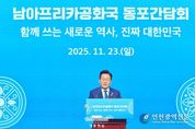 [인천광역신문] 관리자 기자 | 주요 20개국(G20) 정상회의 참석을 위해 남아프리카공화국을 방문한 이재명 대통령은 23일(현지시간) 양국 수교 후 최초로 동포간담회를 개최해 현지에 거주하는 동포들을 격려했다. 이번 간담회에는 동포단체 대표, 경제인, 민주평통 자문위원, 한글학교 관계자, 문화예술인 등 약 70명이 참석했다. 동포 대표로 나선 전소영 남아공 한인회장은 환영사에서 "한국과 남아공은 오랜 세월 우정과 신뢰를 쌓아온 파트너인 만큼, 대통령님의 이번 방문이 양국 관계를 굳건히 다지는 계기가 되기를 기대한다"는 소망을 전했다. 이 대통령은 격려사를 통해 "모국에서 약 1만 2000km인 삼만 리나 떨어진 남아공에서도 동포들이 주권 행사에 어려움이 없도록 전자투표 도입 등 재외선거제도 개선에 노력하겠다"라고 말했다. 또한, "재외동포 현황을 면밀히 파악하고 동포들의 활동을 본국이 적극 지원해 대한민국 국민으로서 소외되지 않고 자부심을 가질 수 있도록 최선을 다하겠다"고 격려했다. 이어 이동민 민주평통자문회의 아프리카협의회 중남부지회장의 건배사로 본격적인 오찬이 시작됐다. 이
