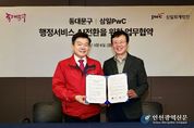 [인천광역신문] 최예준 기자 | 서울 동대문구는 공공 행정서비스의 인공지능 전환, 이른바 AX(Artificial Intelligence Transformation)를 본격 추진하기 위해 삼일PwC와 업무협약을 맺었다. 구는 6일 서울 용산구 삼일PwC TS홀에서 협약식을 열고, 행정서비스 전반에 AI를 어디에, 어떤 방식으로 적용할지 함께 진단하고 자문받는 협력 체계를 마련했다고 밝혔다. 이번 협약은 새 기술을 들여오는 데 그치지 않고, 행정 효율을 높이면서도 구민이 실제로 체감하는 서비스 변화를 만들어내는 데 초점을 맞췄다. 민간의 전문성을 바탕으로 공공행정에 맞는 AX 모델을 짜보겠다는 뜻이다. 동대문구가 이 단계까지 온 데는 그만한 배경이 있다. 구는 지난 2월 6일 ‘AI 공존도시 동대문’을 선포하고 서울시립대·경희대·한국외대·삼육보건대, 동부교육지원청, 서울동부병원, 경희의료원, 삼육서울병원, 동대문경찰서, 동대문소방서 등 11개 기관이 참여하는 거버넌스를 출범시켰다. AI를 보여주기식 기술이 아니라 교육·의료·복지·안전 현장과 연결된 생활형 행정 파트너로 쓰겠다는 선언이었다. 실제 현장에 들어간 사업도 적지 않