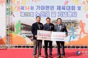 [인천광역신문] 관리자 기자 | 합천군은 26일 가야면 해인중학교 운동장에서 열린 제54회 가야면민체육대회 및 제29회 노인의 날 기념행사 현장에서 부산·울산지역 향우가 고향사랑기부금 600만원을 기탁했다고 밝혔다. 이날 기탁은 가야면 체육회가 주최한 가야면민체육대회 행사 중 진행됐으며, 부산향우와 울산향우(익명 요청)가 각각 300만원씩 고향사랑기부금을 전달했다. 기탁식에는 두 향우가 직접 참석하지 못했으며, 최덕규 전 가야농협장과 임재후 가야면체육회장이 대신 전달해 뜻깊은 마음을 전했다. 기탁된 성금은 합천군 고향사랑기금으로 적립돼 지역 복지증진과 주민 생활여건 개선을 위한 사업에 사용될 예정이다. 김윤철 합천군수는 “타지에서도 늘 고향을 잊지 않고 따뜻한 정성을 보내주신 향우 여러분께 깊이 감사드린다”며 “소중한 기탁금은 지역사회를 위해 의미 있게 활용하겠다”고 전했다. 고향사랑기부제는 개인이 주소지를 제외한 지방자치단체에 연간 2,000만 원 이하의 금액을 기부할 수 있으며, 세액공제(10만 원까지 전액, 초과분 16.5%)와 함께 30% 상당의 답례품(지역특산물·합천사랑상품