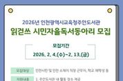 [인천광역신문] 관리자 기자 | 인천광역시교육청주안도서관은 지역주민의 자발적 독서문화 확산을 위하여 2월 4일부터‘2026년 읽걷쓰 시민자율독서동아리’를 모집한다. 이번 모집은 시민이 주체가 되어 독서, 토론, 글쓰기 등 다양한 활동을 펼치는 동아리를 발굴·육성하기 위해 마련했으며, 선정된 동아리에는 활동을 위한 도서와 공간, 운영 물품을 지원하는 등 다양한 혜택을 제공할 예정이다. 모집에 대한 자세한 사항은 주안도서관 누리집을 확인하거나 독서문화과로 문의하면 된다. [뉴스출처 : 인천광역시교육청]