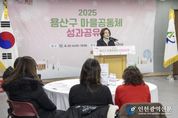 [인천광역신문] 기자 | 서울 용산구가 지난 4일 구청 대회의실에서 ‘2025년 용산구 마을공동체 공모사업 성과공유회’를 열어 참여자 간 응원과 격려의 시간을 가졌다. 마을공동체 공모사업은 주민이 지역 문제를 발굴하고 주도적으로 해결하는 기회로, 올해 2~3월 신청을 받아 5월 14개 모임 선정 후 6~11월 사업을 실시했다. 이번 성과공유회는 공모사업 참여자, 동 담당자, 마을지원활동가 등 50여 명이 참석한 가운데 ▲개회·구청장 인사말씀 ▲친목(아이스 브레이킹) ▲2025년 마을공동체 공모사업 소개 ▲성과공유 및 발표 3건 ▲폐회 순으로 진행됐다. 대회의실 뒤편에는 공모사업 모임 활동사진과 작품 전시도 꾸렸다. 올해 진행한 14개 마을공동체 공모사업에는 ▲환경(기후 환경, 무단투기 예방, 재활용 등) ▲교육(돌봄, 부모 교육 등) ▲인권(1인 가구 지원, 약자와의 동행, 복지 사각지대 발굴 등) ▲기타 분야가 있다. 이중 후암동펜클럽(후암동), 원효에코실험실(원효로2동), 좋은날(효창동) 3개 모임이 대표로 발표하며 사업을 소개했다. 후암동펜클럽은 골목길을 탐방하며 색칠 그림책(컬러링 북)을