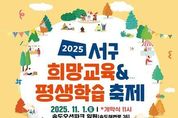 [인천광역신문] 관리자 기자 | 부산 서구는 오는 11월 1일 송도오션파크에서 서부교육지원청과 공동으로 '2025년 서구 희망교육 & 평생학습 축제'를 개최한다. 이번 축제는 ‘아이부터 어른까지, 함께 배우고 나누는 즐거운 하루’를 주제로 오전 11시부터 오후 4시까지 다채로운 프로그램이 펼쳐질 예정이다. 대신여자중학교의 신나는 밴드 공연을 시작으로, 관내 7개 학교, 10개 학생 동아리, 12개 평생학습 동아리가 참여해 열띤 무대를 선보인다. 또한 38개의 특색 있는 체험부스, 온가족 플리마켓, 희망교육 & 평생학습 작품 전시회 등 풍성한 볼거리와 즐길거리로 가득할 예정이다. 특히 오는 11월 22일 개관 예정인 서구아미드림도서관 홍보‧체험부스도 운영되어 구민들이 서구의 첫 구립도서관을 미리 만나볼 수 있다. 공한수 서구청장은 “희망교육과 평생학습이 어우러지는 이번 축제를 통해 지역 주민들이 함께 배우고 소통하며 성장하는 계기가 되길 바란다”고 말했다. [뉴스출처 : 부산시서구]
