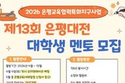 [인천광역신문] 관리자 기자 | 서울 은평구는 은평구진로직업체험지원센터 주관으로 진행되는 진로·진학 지원사업 ‘제13회 은평대전’에 참여할 대학생 멘토를 모집한다고 밝혔다. ‘은평대전’은 ‘은근히 평범한 대학생들의 전공 이야기’의 줄임말로, 대학생 멘토가 자신의 전공 선택 과정과 대학 생활, 진로 경험을 청소년 눈높이에 맞춰 전달하는 프로그램이다. 2014년 시작해 올해로 13년째를 맞았다. 프로그램은 ▲중·고등학교 방문 전공강연 ▲전공 체험 활동 ▲소그룹 전공 상담 ▲전공박람회 등으로 구성돼, 청소년에게는 진로 탐색 기회를, 멘토에게는 교육·소통 역량을 키울 수 있는 경험을 제공한다. 전공 멘토링에 관심 있는 대학생·대학원생(올해 신입생 포함)은 누구나 지원할 수 있으며, 은평구 출신 또는 거주자는 우대 선발한다. 멘토 모집 기간은 다음달 26일까지이며, 신청은 은평구진로직업체험지원센터 누리집 또는 홍보물 속 큐알(QR)코드를 통해 신청서를 내려받아 전자우편으로 제출하면 된다. 이와 함께 대학생 멘토기획단 ‘프리지아’ 8기도 내달 2일까지 모집한다. 프리지아는 은평대전 운영 전반을 지