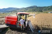 [인천광역신문] 관리자 기자 | 고성군은 10월 27일 친환경 벼 재배단지(연동단지)를 방문해 수확 현장을 점검하고, 깨씨무늬병 발생으로 어려움을 겪고 있는 농업인들을 격려했다고 밝혔다. 이번 방문은 올해 여름 집중호우와 고온다습한 기후로 인해 발생이 심해진 깨씨무늬병 피해 현장을 직접 확인하고, 피해 최소화를 위한 향후 대응책을 논의하기 위해 마련됐다. 연동 친환경 벼 재배단지는 12ha 규모의 유기농 벼를 재배하는 단지로, 농약 사용없이 친환경 재배기술을 적용하고 있으나, 올해는 깨씨무늬병 확산으로 인해 일부 필지에서 평년 대비 20~30%가량의 수확량 감소가 발생한 것으로 나타났다. 이상근 군수는 현장에서 직접 수확 작업에 참여하며 농업인들의 애로사항을 청취하고, “기후변화로 인한 병해충 발생이 점점 심각해지고 있다”라며, “이번 피해를 계기로 이상기후로 변화하는 농작물 병해충에 능동적으로 대응할 수 있도록 행정역량을 강화하고, 농가가 안정적으로 생산을 이어갈 수 있도록 적극 지원하겠다”라고 밝혔다. 고성군은 벼 병해충 확산 방지를 위해 연간 3회의 공동방제 지원, 병해충 예찰단 운영, 친환경
