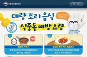 [인천광역신문] 관리자 기자 | ■ 대량 조리 음식 식중독 예방요령 ① 완전히 익히기 육류 중심온도 75°C(어패류 85°C) 1분 이상 가열하기 ② 조리된 음식 즉시 제공하기 조리된 상태로 상온에 방치되지 않도록 조리 후 즉시 제공하기 ③ 가열 조리 후 신속히 냉각하기 가열 조리 후 즉시 섭취하지 않을 시, 여러 용기로 나누어 담거나 신속히 냉각하기 ④ 보관온도 유지하기 따뜻한 음식은 60°C 이상, 차가운 음식은 5°C 이하로 보관하기 ⑤ 재가열하여 섭취하기 보관된 음식 섭취 시, 충분히 가열 후 섭취하기 ■ 운반 시 식중독 예방 요령 · 차량·운반기구 청결히 관리하기 - 오염되기 쉬운 곳 세척·소독하고 청결 상태 수시로 확인하기 · 운반 시 음식 온도 관리 주의 - 따뜻한 음식과 차가운 음식이 서로 닿지 않게 구분하기 · 안전하게 포장하기 - 음식이 새거나 오염되지 않도록 완전히 밀폐되게 포장하기 · 운반 후 즉시 제공하기 - 음식 운반이 완료되면 즉시 제공하기 [뉴스출처 : 식품의약품안전처]