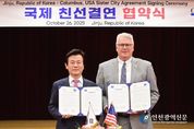 [인천광역신문] 관리자 기자 | 진주시는 26일 진주시청 2층 시민홀에서 미국 조지아주 콜럼버스시와 국제 친선결연 협약을 체결했다고 밝혔다. 이날 협약식에는 조규일 진주시장, 스킵 헨더슨 콜럼버스 시장, 백승흥 진주시의회 의장, 김종욱 진주 K-기업가정신재단 회장, 스튜어트 레이필드 콜럼버스 주립대학교 총장, 미시 켄드릭 Choose Columbus 회장, 기업인 등 두 도시의 주요 인사 30여 명이 참석한 가운데 개최됐다. 콜럼버스시는 미국 조지아주에 위치하며 친기업 정책으로 신규 기업투자가 활발하며 한국의 제조공장들이 다수 진출한 미국 남동부 제조업의 허브로 알려져 있다. 이번 진주시와 콜럼버스시 간 친선결연 협약은 지난 6월 콜럼버스 주립대학교 대표단 방문 시 체결된 업무협약을 계기로 양 도시 간 우호 증진과 교류 확대에 대한 공감대가 형성되면서 결실을 맺게 된 것이다. 협약의 주요 내용은 △긴밀한 우호 관계 확립 △상호 공동 관심 분야의 교류 활동 △지식정보 교환 등 우호적 환경 조성 등 양 도시 간 긴밀한 우호 관계 확립을 위한 활동 및 지원 추진이 포함됐다. 양 도시는 이번