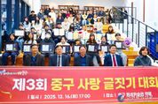 [인천광역신문] 최예준 기자 | 인천 중구의회는 12월 16일, 중구 평생학습관에서 개최된 제3회 중구사랑 글짓기 대회 시상식에 참석해 수상자들을 축하했다고 밝혔다. 이날 시상식에는 강후공 의원이 참석해 수상자들에게 축하 인사를 전하고, 참여 학생들과 관계자들을 격려했다. 강후공 의원은 “이번 대회를 통해 지역에 대한 이해와 자긍심이 자연스럽게 형성되고, 올바른 가치관과 표현력을 기르는 계기가 되길 바란다”라며 “중구의회도 지역 정체성과 공동체 의식을 높이는 다양한 문화·교육 활동을 지속적으로 응원하겠다”라고 밝혔다. 또한 앞으로도 주민 참여형 문화·교육 행사를 적극 지원하고, 지역사회와 소통하는 의정활동을 이어갈 계획이라고 말했다. [뉴스출처 : 인천시 중구의회]