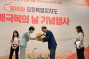 [인천광역신문] 관리자 기자 | 2025년 원주시 치매극복의 날 기념식이 지난 17일 동부복합생활지원센터에서 성황리에 개최됐다. 이번 기념식은 원주시에서는 처음으로 개최한 치매극복의 날 공식행사로, 치매 조기 검진을 독려하고 치매에 대한 긍정적인 인식을 함양하는 뜻깊은 자리로 마련됐다. 이날 기념식에서는 치매 극복을 위해 헌신한 보호자와 지역사회 단체에 표창을 수여했다. 또한 경로당 순회프로그램 발표대회 으뜸상을 수상한 장양5리 경로당의 축하공연과 치매 인식 개선 영화공모전 최우수작 ‘그냥 열심히 일만 하면 되는 줄 알았지’ 상영이 이뤄졌다. 원강수 원주시장은 “앞으로도 원주시는 치매 친화적 환경 조성을 통해 가족과 이웃, 지역사회가 함께 힘을 모아 치매를 극복할 수 있는 도시를 만들겠다”라고 말했다. [뉴스출처 : 강원도 원주시]