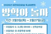 [인천광역신문] 관리자 기자 | 인천광역시교육청신트리도서관은 2월 3일부터 27일까지 어린이들의 독서 습관 형성을 위한 겨울방학 이벤트 ‘방학아 놀자’를 운영한다. 이번 프로그램은 독서 활동을 놀이처럼 즐길 수 있는 미션 수행형으로, 어린이들이 자연스럽게 책을 접하며 도서관을 즐거운 문화공간으로 경험할 수 있도록 돕고자 마련했다. 점수는 2월 3일 오전 9시부터 어린이자료실에서 선착순으로 진행하며, 자세한 사항은 신트리도서관 누리집을 참고하거나 어린이자료실로 문의하면 된다. [뉴스출처 : 인천광역시교육청]