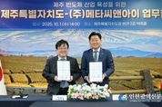 [인천광역신문] 관리자 기자 | 인공지능(AI) 시스템반도체 강소기업 ㈜메타씨앤아이가 제주로 본사를 이전하며 제주특별자치도와 함께 첨단 반도체 산업 생태계 구축을 위한 협력을 시작했다. 제주도는 1일 오후 도청 백록홀에서 인공지능(AI) 시스템반도체 기업인 메타씨앤아이와 업무협약을 체결했다. 이번 협약은 메타씨앤아이가 지난 8월 말 제주로 본사 주소를 이전한 데 이어, 제주가 첨단전략산업 거점으로 도약하기 위해 민선 8기 도정이 중점 추진해온 ‘상장기업 육성 및 유치’ 노력의 결실이라는 점에서 의미가 크다. 메타씨앤아이는 스마트폰 디스플레이용 초저전력 인공지능(AI) 시스템반도체를 설계하는 반도체칩 설계 전문 팹리스(Fabless) 기업이다. 스마트폰 디스플레이용 인공지능(AI) 시스템반도체와 초고해상도 마이크로디스플레이 저전력 설계 기술을 바탕으로, 2024년 '포브스코리아'의 ‘대한민국 파워 혁신기업 30-반도체 섹터’에서 삼성전자·SK하이닉스에 이어 선정될 만큼 기술력과 성장 잠재력을 인정받은 강소기업이다. 특히 정민철 대표는 2000년부터 5년간 메모리 반도체업체 제주반도체에