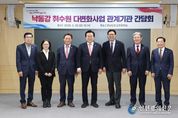 [인천광역신문] 관리자 기자 | 부산시는 어제(20일) 오후 4시 경상남도청 도정회의실에서 개최된 '낙동강 취수원 다변화사업 관계기관 간담회'에서 물 문제 해결을 위한 의미있는 논의를 진행했다고 밝혔다. 간담회에는 박형준 부산시장, 박완수 경상남도지사, 박상웅 국회의원, 의령군수, 창녕군수, 기후에너지환경부 물이용정책관, 창녕군 반대대책위원장 등 총 7명이 참석하여 사업 전반과 주민 우려사항을 심도 있게 논의했다. 또한 합천군을 비롯해 수혜 지역인 창원시·양산시·함안시·김해시 부단체장이 배석하는 등 관련 지자체가 모두 함께해 자리를 더욱 뜻깊게 했다. 이번 간담회는 ▲[기후에너지환경부] 낙동강 취수원 다변화사업 추진상황 보고 ▲[부산시] 취수지역 상생협력방안 보고 ▲[토론] 질의응답 및 기관별 입장 공유 순으로 진행됐다. 기후부는 낙동강 취수원 다변화사업 추진상황을 그동안 반대대책위원회가 제시한 주요질의에 대한 응답 형식으로, ▲지점별 취수계획 ▲지하수위 영향범위 ▲지하수위 감소 대책 ▲손실보상 방안 등을 설명했다. 부산시는 ▲부산-창녕 상생발전기금 조성 ▲창녕군 출신 학생 장학금·기숙