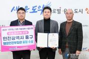 [인천광역신문] 박진 기자 | 인천시 중구는 행정안전부가 주관한 ‘2025년 기후 재난 대응 우수 지자체’에 선정돼 행안부 장관 표창의 영예를 안게 됐다고 21일 밝혔다. 이번 표창은 그간 중구가 기후변화에 따른 자연 재난에 선제적으로 대응해 ▲취약계층 보호 강화 ▲기후 재난 상황별 긴급 대응 체계 구축 ▲민관합동 재난 예방 홍보활동 등을 체계적으로 적극 추진한 점을 높이 평가받은 것이다. 특히 지난 겨울 한파 대응 과정에서 노숙인·독거노인 등 재난 취약계층 보호를 위한 현장 중심의 대응 체계를 운영하며, 실질적인 안전 확보 성과를 거둔 점이 주목받았다. 이번 우수 지자체 선정에 따라 인천 중구는 행안부 장관 표창과 함께 특별교부세 5,000만 원을 받게 됐다. 해당 예산은 향후 기후 재난 예방과 구민 안전을 위한 정책 추진 등에 활용될 예정이다. 중구 관계자는 “이번 성과는 기후 재난 대응을 위한 선제적 준비와 현장 중심 행정의 결과”라며, “이를 계기로 기후 재난 대응 역량을 더욱 강화하고, 앞으로도 주민 밀착형 안전 홍보와 예방 활동을 지속적으로 추진해 안전한 중구를 만드는 데