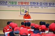 [인천광역신문] 관리자 기자 | 속초시가 오는 12월 15일까지로 공고된 산림청의 산불조심기간에 맞춰 가을철 산불 예방을 위한 총력 대응에 나섰다. 시는 10월 27일, 시청 대회의실에서 ‘산불진화대·감시원 발대식’을 열고 산불방지대책본부를 본격 가동하며 가을철 산불 예방 활동에 나섰다. 발대식에는 산불전문예방진화대원 35명과 산불감시원 100명 등 135명이 참석한 가운데, 산불 예방 결의문 낭독, 안전교육, 장비 점검 및 임무 교육 등이 이어지며 산불조심기간 대비 태세를 확립했다. 한편, 최근 속초시에는 긴 가을장마가 이어졌지만, 이후 건조한 기후가 이어질 것으로 예보되고 있다. 또한, 최근의 산불 발생 추이를 고려할 때 대형 산불의 위험이 커질 것으로 우려되는 상황이다. 이에 시에서는 산불진화대·감시원을 비롯해 가용 가능한 인력과 장비를 모두 동원해 산불 발생 예방과 초기 대응체계를 강화한다는 방침이다. 시는 그간 운영한던 산불감시카메라 7대와 감시초소 40곳에 대한 사전 점검과 산림 연접지의 인화물질 제거 작업 등을 마무리한 바 있다. 또한, 산림 특별사법경찰 권한으