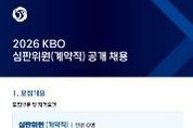 [인천광역신문] 관리자 기자 | KBO는 퓨처스리그에서 활동할 KBO 심판위원을 공개 채용한다. 이번 채용은 KBO 야구심판 양성과정 수료자(2026년 야구심판 양성과정 수료 예정자 포함) 또는 대한야구소프트볼협회(KBSA) 및 산하단체, 독립리그 소속 심판으로 1년 이상의 심판 활동 경력(단체장 직인 필수) 보유자에 한해서 지원이 가능하다. 최종 합격자는 2026 KBO 공식 심판위원으로 활동하게 되며, 근무 종료 후 평가 결과에 따라 정규직 전환이 검토된다. 채용과 관련된 세부 정보 및 우대 사항은 채용 공고문을 통해 확인 가능하다. 접수 기간은 오늘(2일)부터 23일(월)까지며, KBO 채용 홈페이지(kbo.saramin.co.kr)에서 지원 가능하다. [뉴스출처 : KBO]