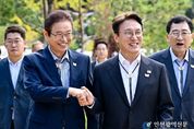 [인천광역신문] 관리자 기자 | 이철우 경상북도지사는 10일, APEC 현장점검을 위해 경주를 방문한 김민석 국무총리와 함께 행사 관련 시설을 점검하고, APEC 준비지원단, 경찰, 소방 공무원 등 근무 인력을 격려했다. 이날 취임 후 6번째 경주 현장을 방문한 김민석 총리는 이철우 경상북도지사, 주낙영 경주시장 등과 함께 직원을 격려한 후 정상숙소 PRS와 정상회의장인 화백컨벤션센터를 점검하고 동국대 경주병원을 찾아 응급의료센터와 VIP 전용 병동을 둘러보면서 APEC 응급의료 준비상황에 대한 보고를 받았다. 경상북도 APEC 준비지원단 사무실을 방문한 김 총리는 지원단 직원을 비롯하여, 소방, 경찰 등 그동안 현장에서 APEC 준비를 위해 노력해 준 직원들을 격려하고, 20여 일 남은 정상회의가 성공적으로 개최될 수 있도록 마지막까지 수고해 달라고 당부했다. 특히 추석 연휴에도 행사 준비를 위해 애쓴 직원들에게 감사의 뜻을 표했다. 직원 격려 간담회 후 김 총리와 이철우 지사 등 일행은 PRS 숙소와 정상회의장 준비상황을 점검했다. 이후 동국대 병원으로 자리를 옮긴 김민석 총리 일행